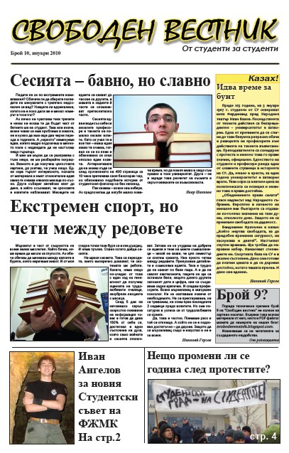 - Свободен вестник брой 10/2010, страница 1