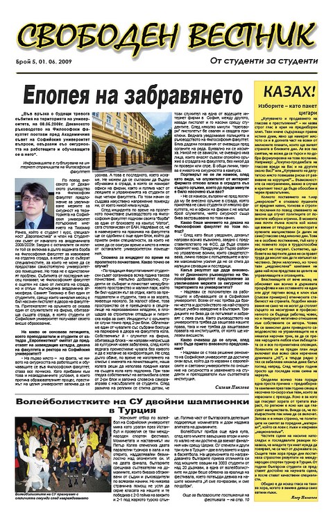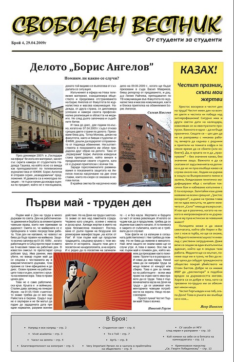 Утре (само с ден закъснение, нов рекорд на печатницата...) около обяд ще го раздаваме на Семинарията, из Ректората, на Плиска/4-ти км и в Студентски град. Прилагам нашата скромна първа страница, за да придобиете най-обща представа за съдържанието на броя.