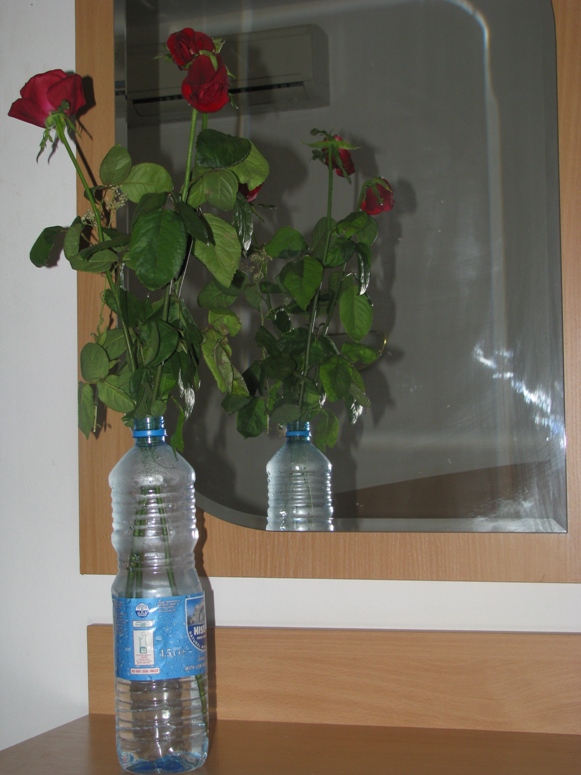 Само пластмасовата бутилка ми разваляше кадъра, ама нямаше къде да търся ваза в хотела.