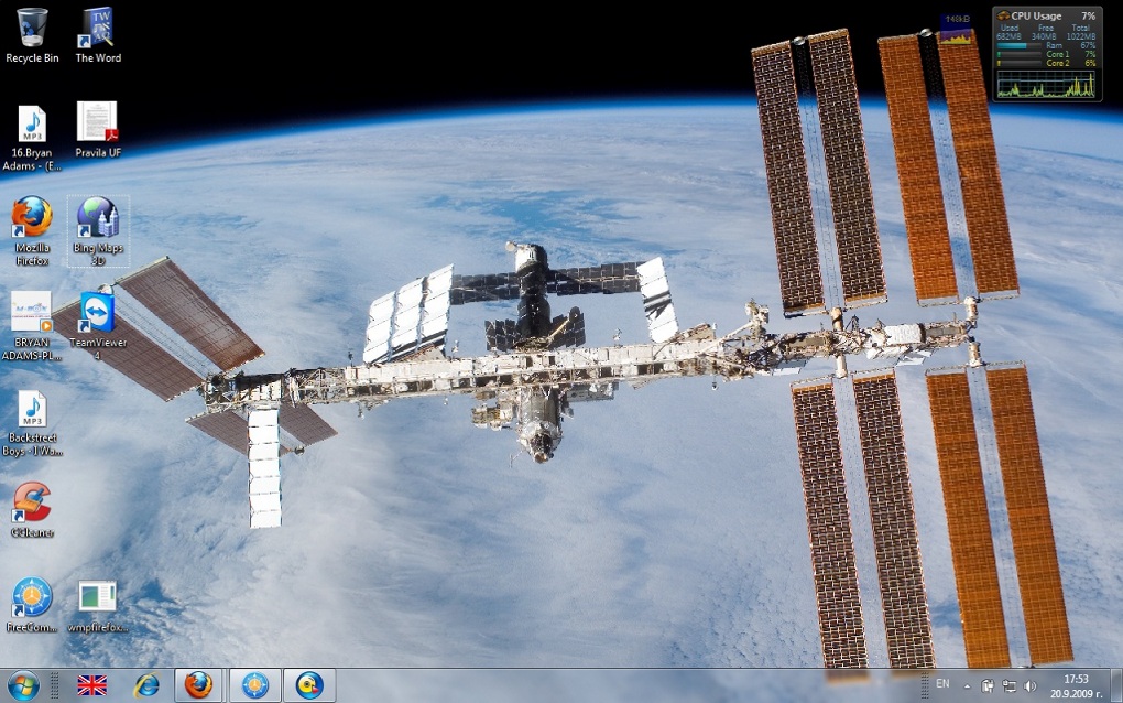 Ето и част от моят десктоп,уолпейпърите се сменят на всеки 30 сек. и това е един от тях космоса.