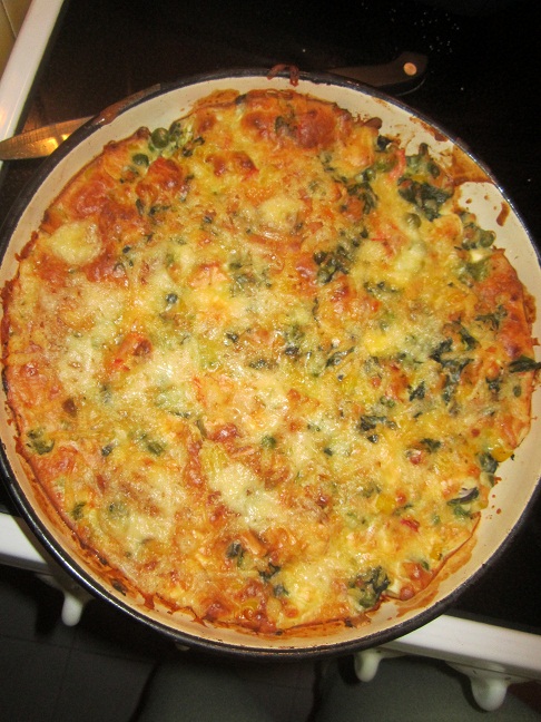 Една моя импровизация-нарекох я зеленчуков залез.Падна играчка,защото първо ги правих на пара зеленчуците (грах,царевица,моркови,броколи,спанак) и чак после им добавих една смес със сиренце,и ги запекох малко.Не мога да им се наситя,което не е хубаво...